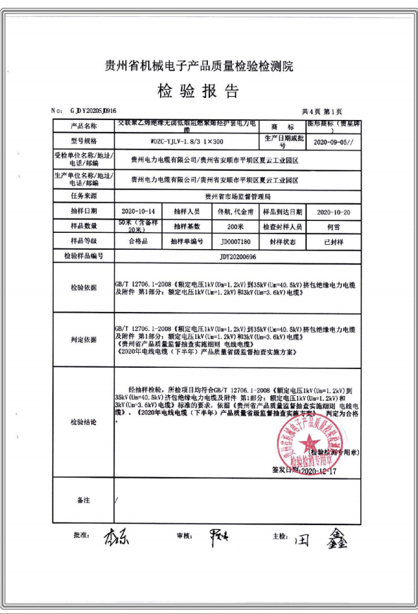 上一篇:鋁芯交聯(lián)聚乙烯絕緣聚氯乙烯護套電力電纜 檢驗報告